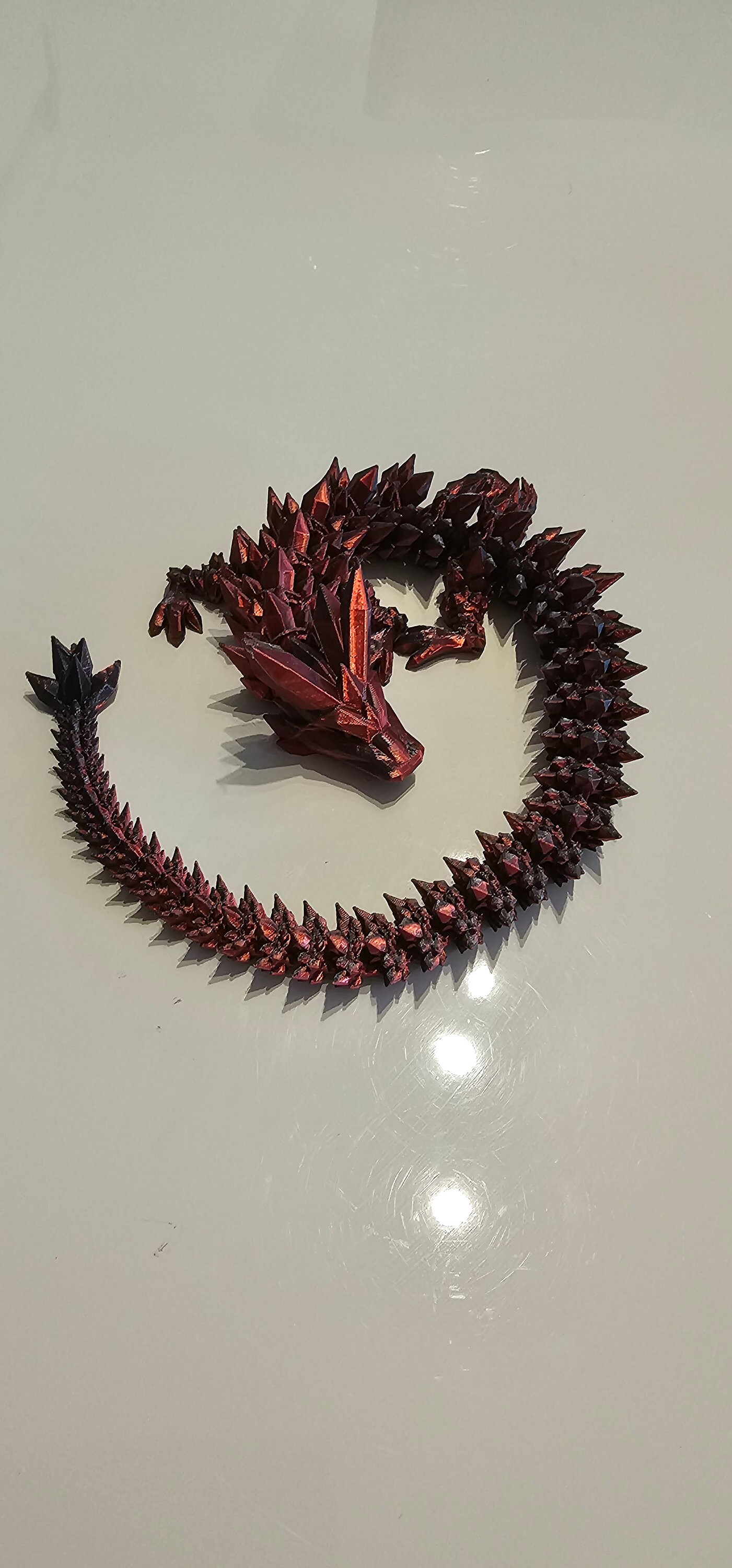 A stunning print if I do say so myself. A gorgeous Crystal Dragon Here is our take on Cinderwing3d's Model this size is 42cm and is a great print. A wee bit smaller then our chonk but still fun to play with regardless :D Note with Rainbow filament the colours may shift slightly due to the nature of how the rainbow filament is wound. each dragon will be slightly unique in colour and we think thats a cool thing :D No 2 rainbows will be the same Made from PLA and 3D printed with care. All our Dragons are Printed at 0.16mm layer height and are printed with the utmost care. Please note due to the nature of 3D printing some layer lines can be seen and there may be slight defects. This is normal for 3D printing but we do our best to provide stunning prints and all prints are printed with strength in mind. ** We have Limited Colours but are always expanding so keep an eye out ** Note as our products are made to order there may be a slight wait whilst our machines print your order.