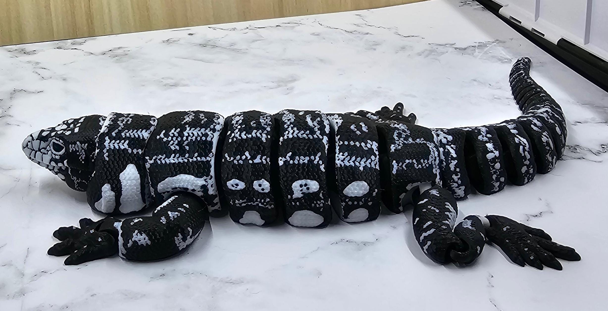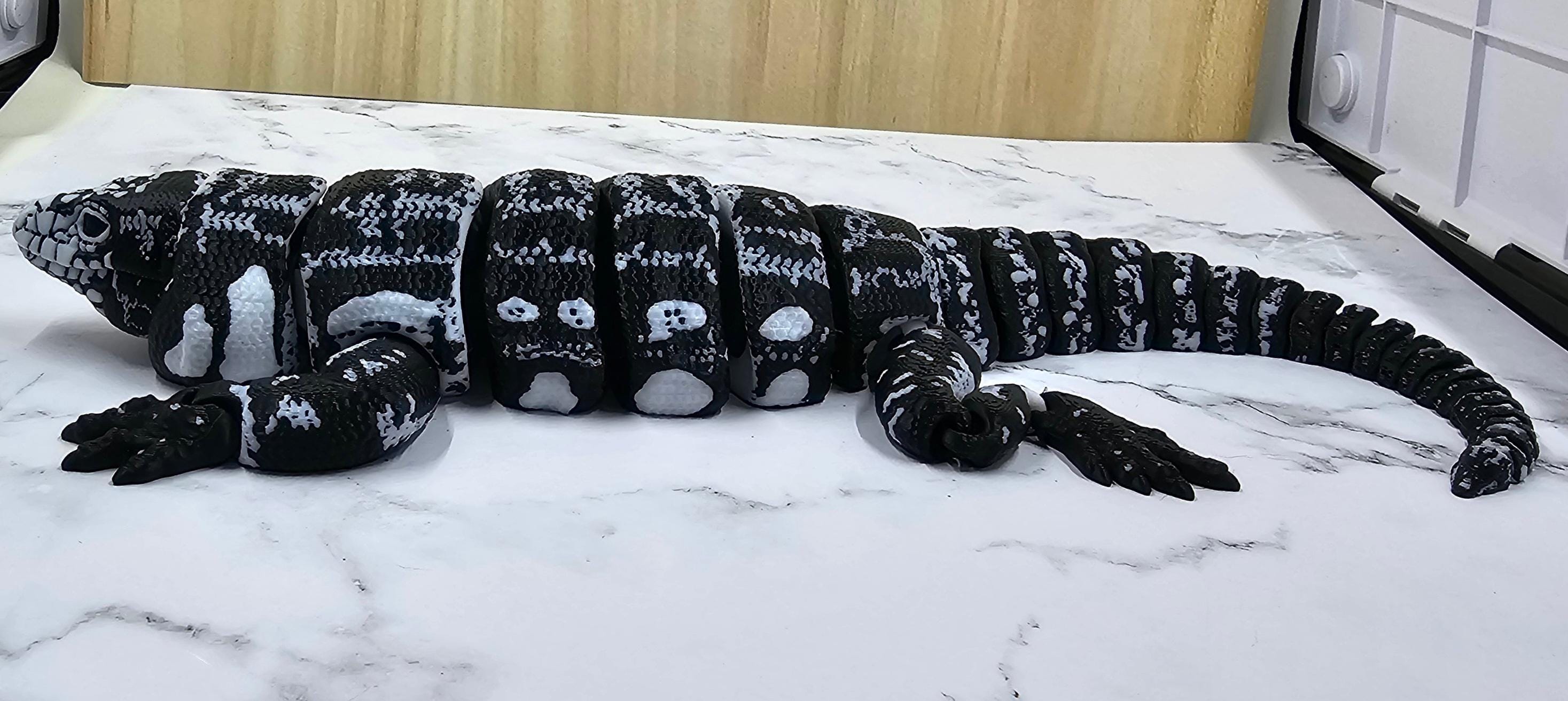 Another Raki-Box 3D Print. I love the pattern of this Tegu Lizard. It looks unreal. This little guy measures a smidge over 33cm in length This little tegu will steal your heart. Its a fun little fidget desk ornament and has a great hand feel. Printed in PLA Can do it in other colours just message me always happy to help :)