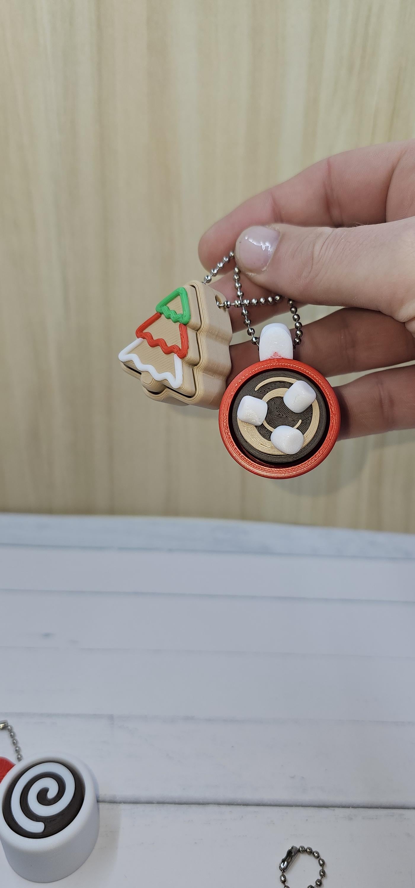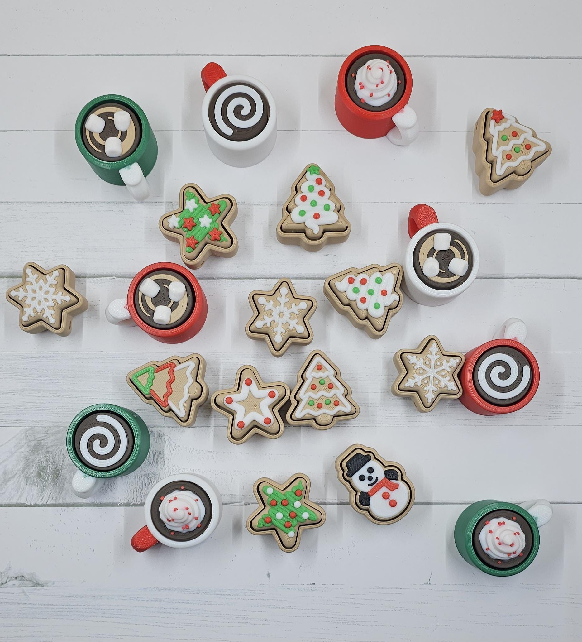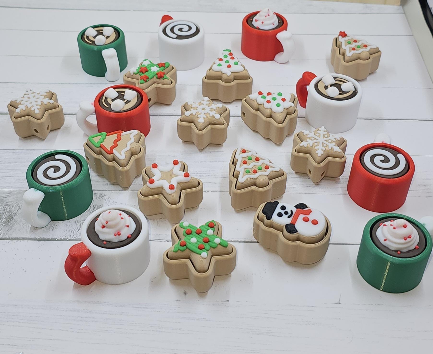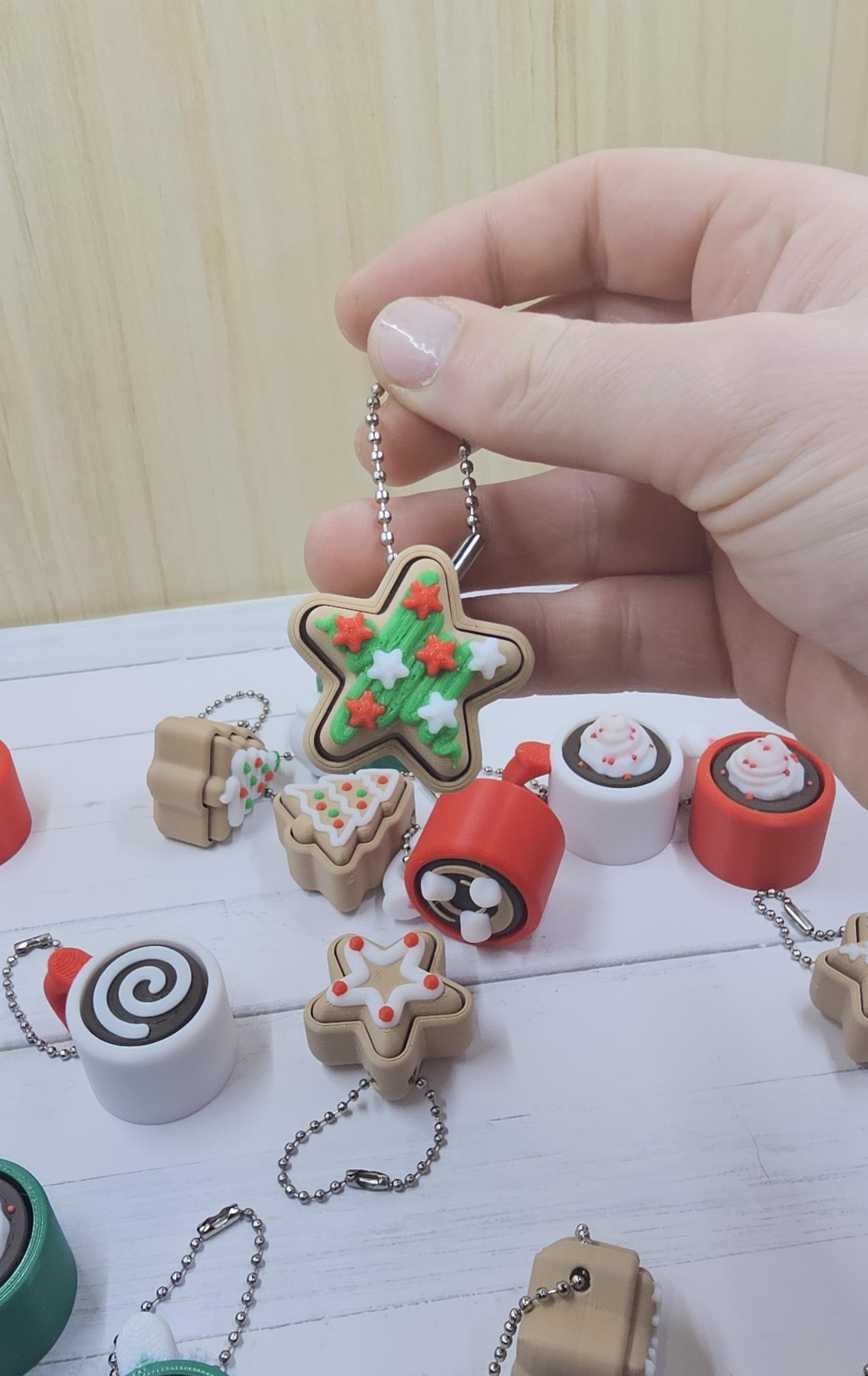 ✨ The Ultimate Holiday Fidget Duo – Best Value Gift! 🎁 Christmas Duo Pack Includes: A Hot Cocoa Mug Clicker and a Sugar Cookie Clicker, giving you two premium fidget keychains for only $9.00! Perfect as a stocking stuffer, desk accessory, or a festive little treat for anyone who loves clickers. 🧠 Key Features – Quality & Craftsmanship Premium Click: Both the Mug and Cookie feature a genuine mechanical key switch for a durable, high-quality tactile click. High Detail Finish: Each is printed in 4–5 separate filaments for maximum realism — think rich chocolate tones, creamy swirls, and candy sprinkles! Work & Gift Friendly: A discrete desk fidget or adorable keychain companion. Available Themes: Choose your favourite holiday combo: 🎅 Classic Red/White (Red Mug) 🌲 Forest Green/White (Green Mug) ❄️ Snowy White/Red (White Mug) 📏 Dimensions (Approximate) Hot Cocoa Mug Clicker Length (incl. handle): 45.5 mm Width (mug body): 33.5 mm Height range: 24.0–36.3 mm (varies by topping) Cocoa Topping Heights: Swirl (Plain): ~24 mm Marshmallows: ~29 mm Foam w/ Red Dots: ~36 mm Christmas Cookie Clicker Height: 23–26 mm (varies by shape/icing) Width: 35–37 mm (e.g. Tree, Star) 🍪 Assortment Policy To ensure fast holiday shipping, the cookie shape (Tree, Star, etc.) and cocoa topping (Swirl, Marshmallow, etc.) are chosen at random. If you’d like a particular combination, please leave a Note to Seller at checkout — we’ll do our very best to accommodate based on stock. ✅ Ready to Ship Fast for Christmas! Beautifully made, fun to click, and bursting with festive charm — this duo is the perfect way to spread a little joy this season.