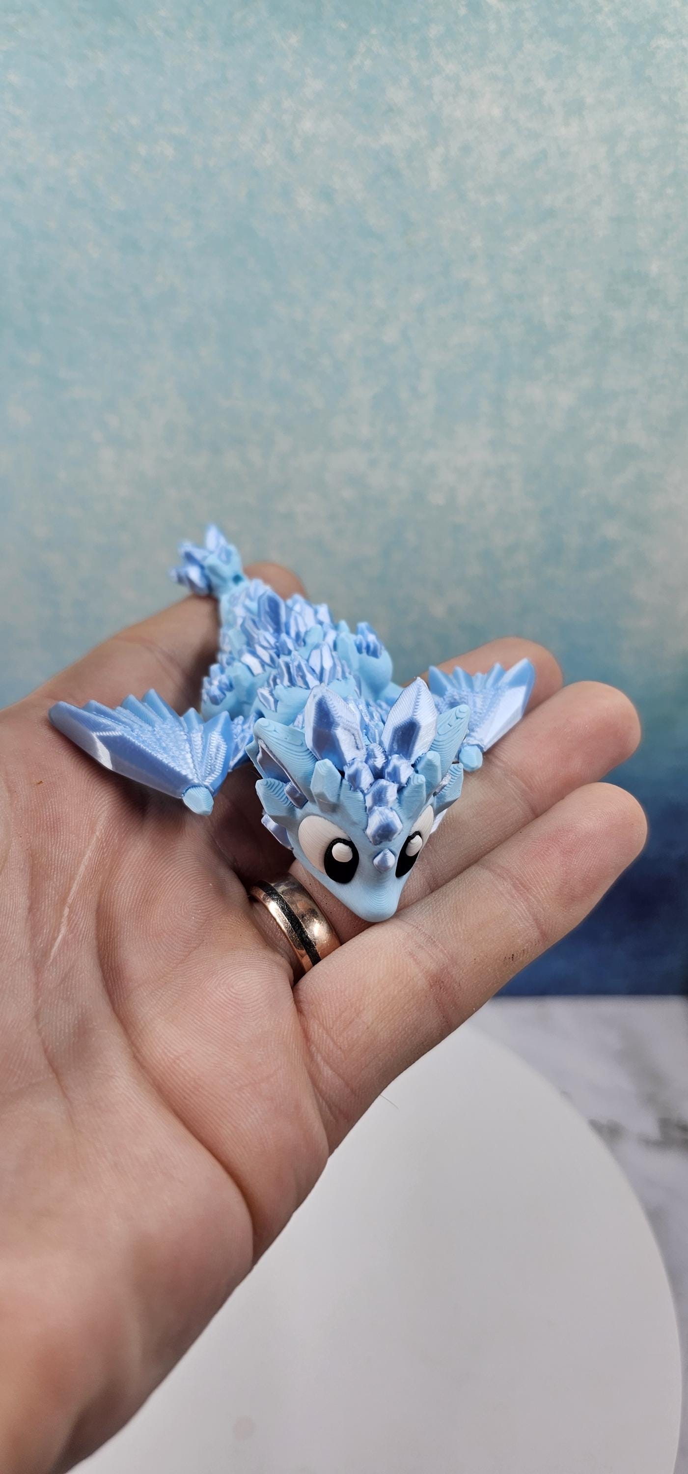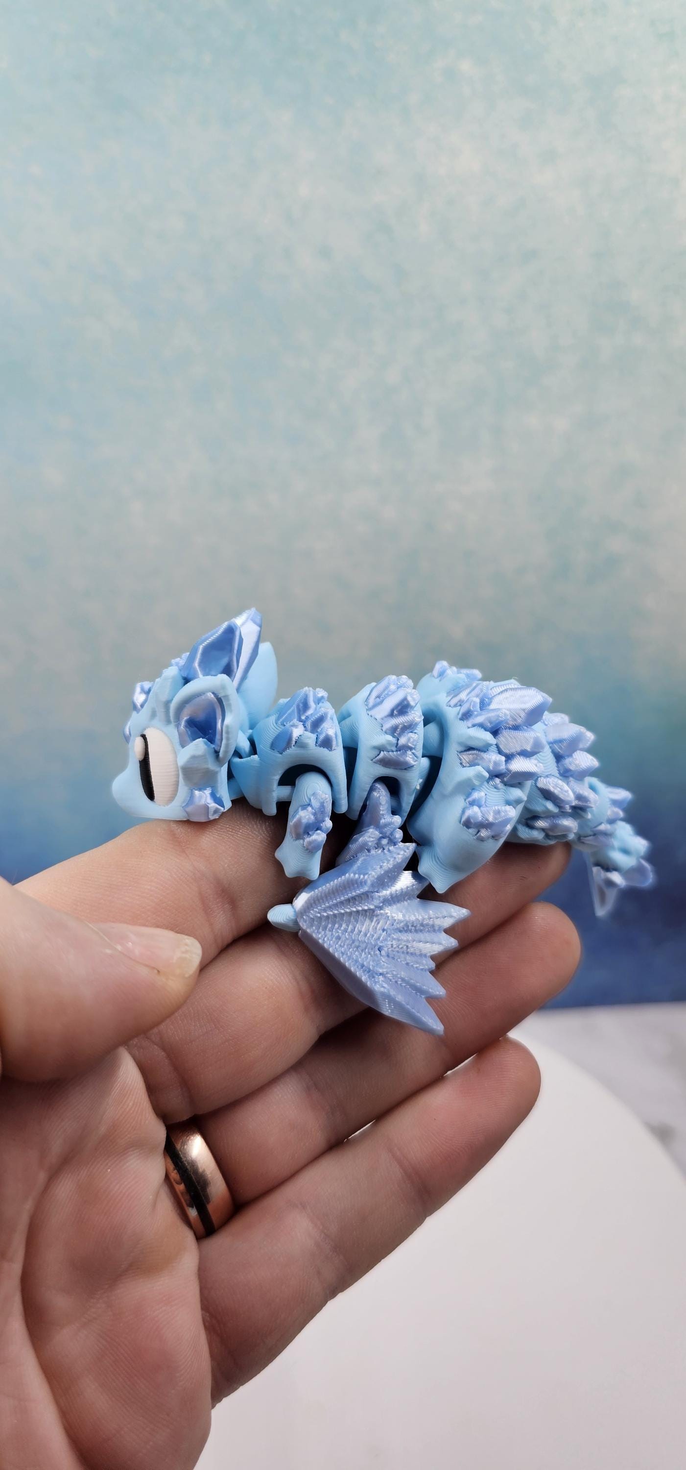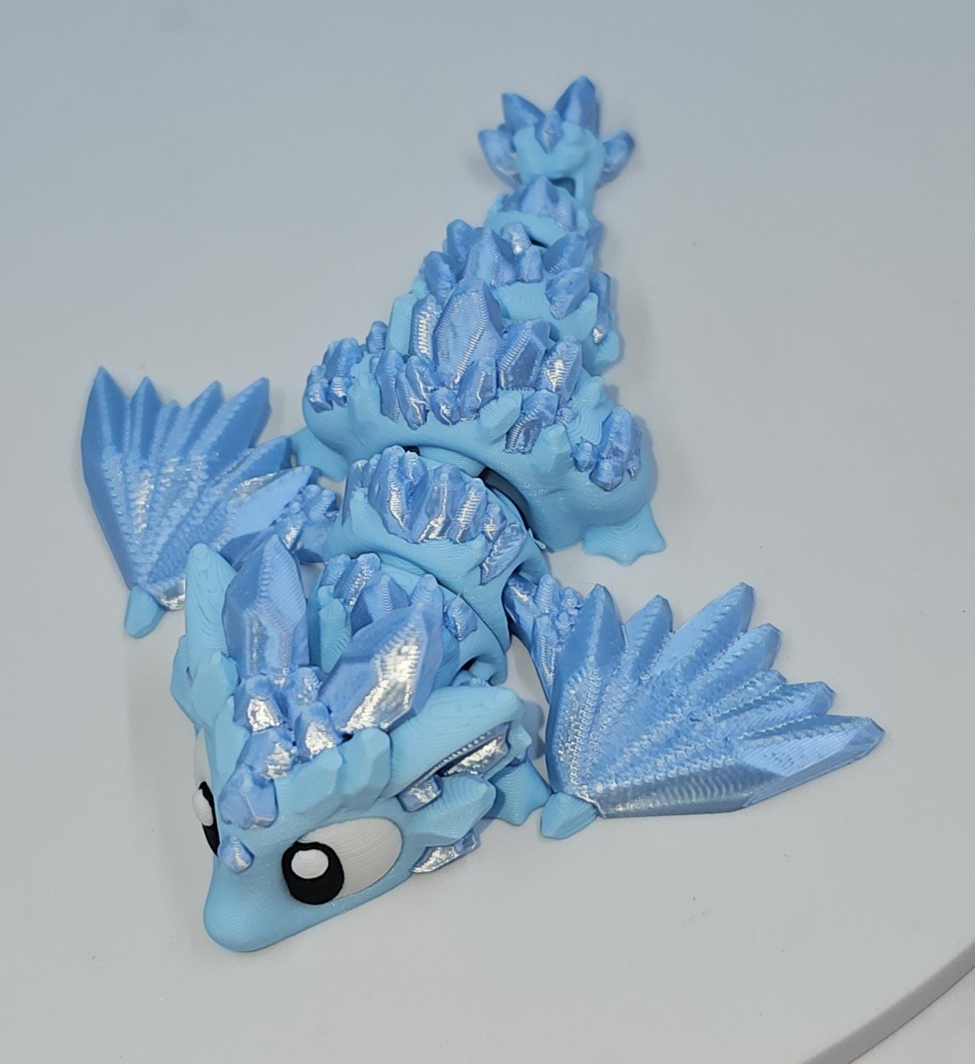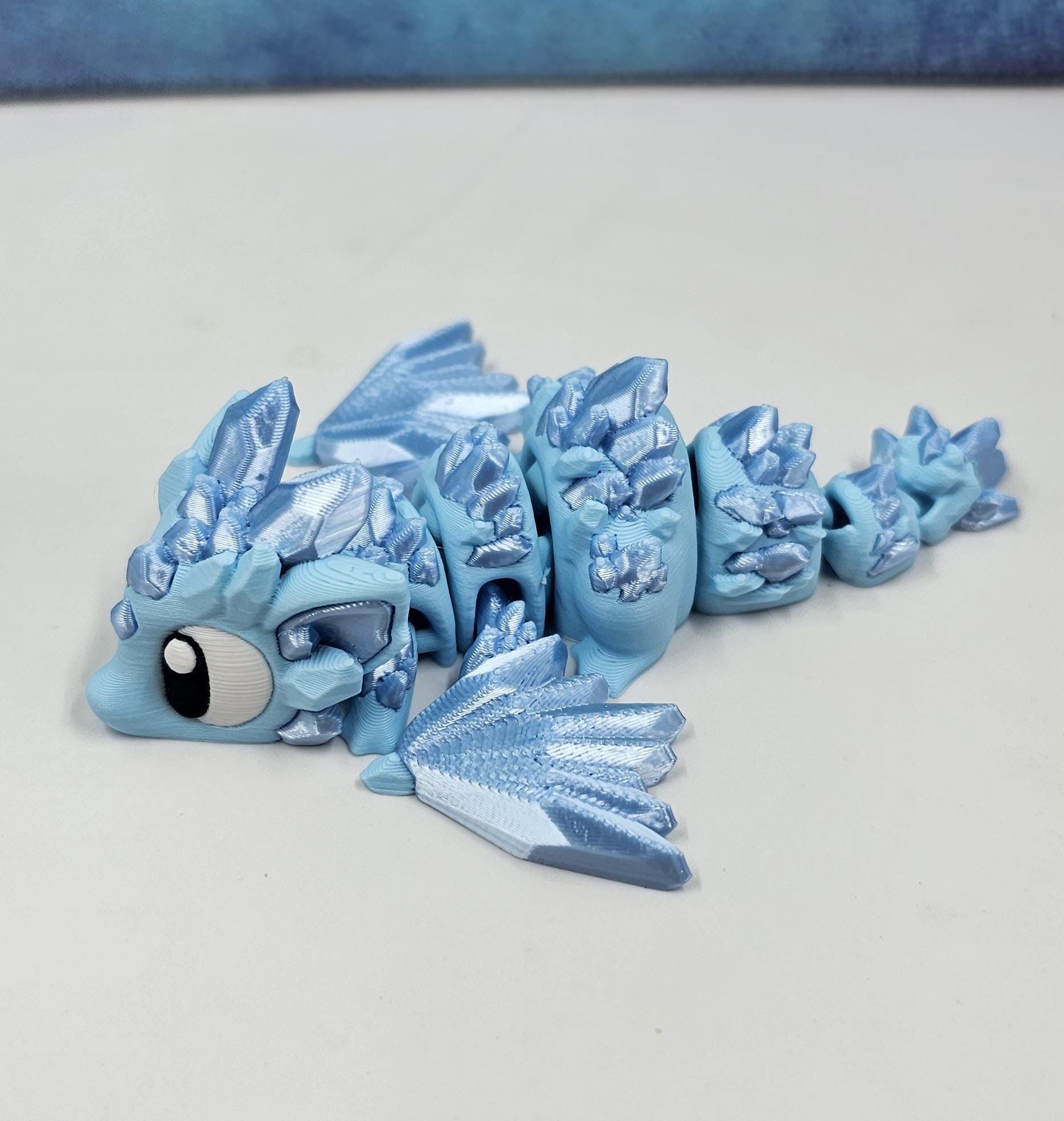 This set features a charming mini crystal dragon paired with a matching crystal-style egg. Printed in a stunning combination of matte ice blue and silk sky blue, the crystal accents catch the light beautifully and give this piece its signature shimmer.