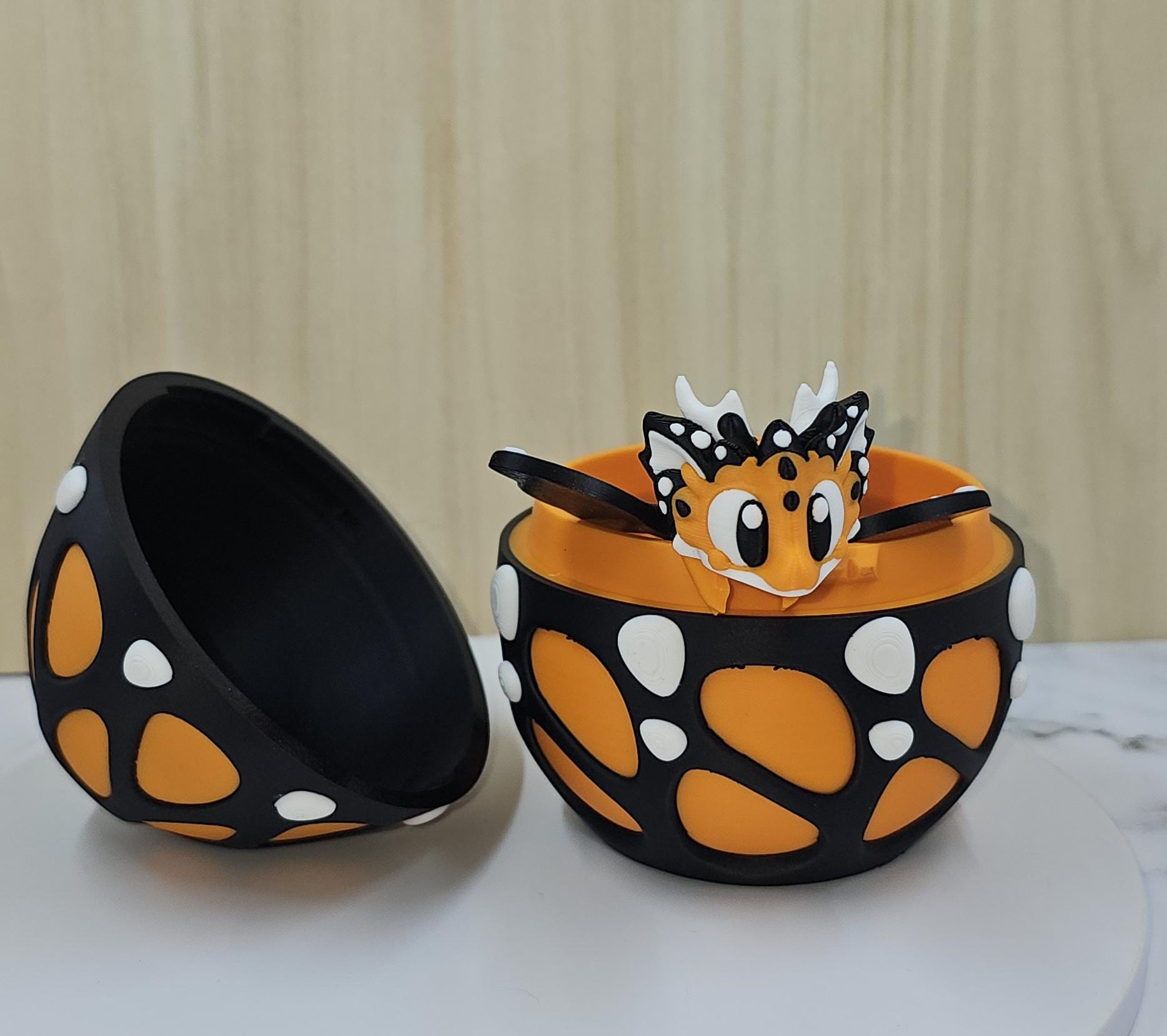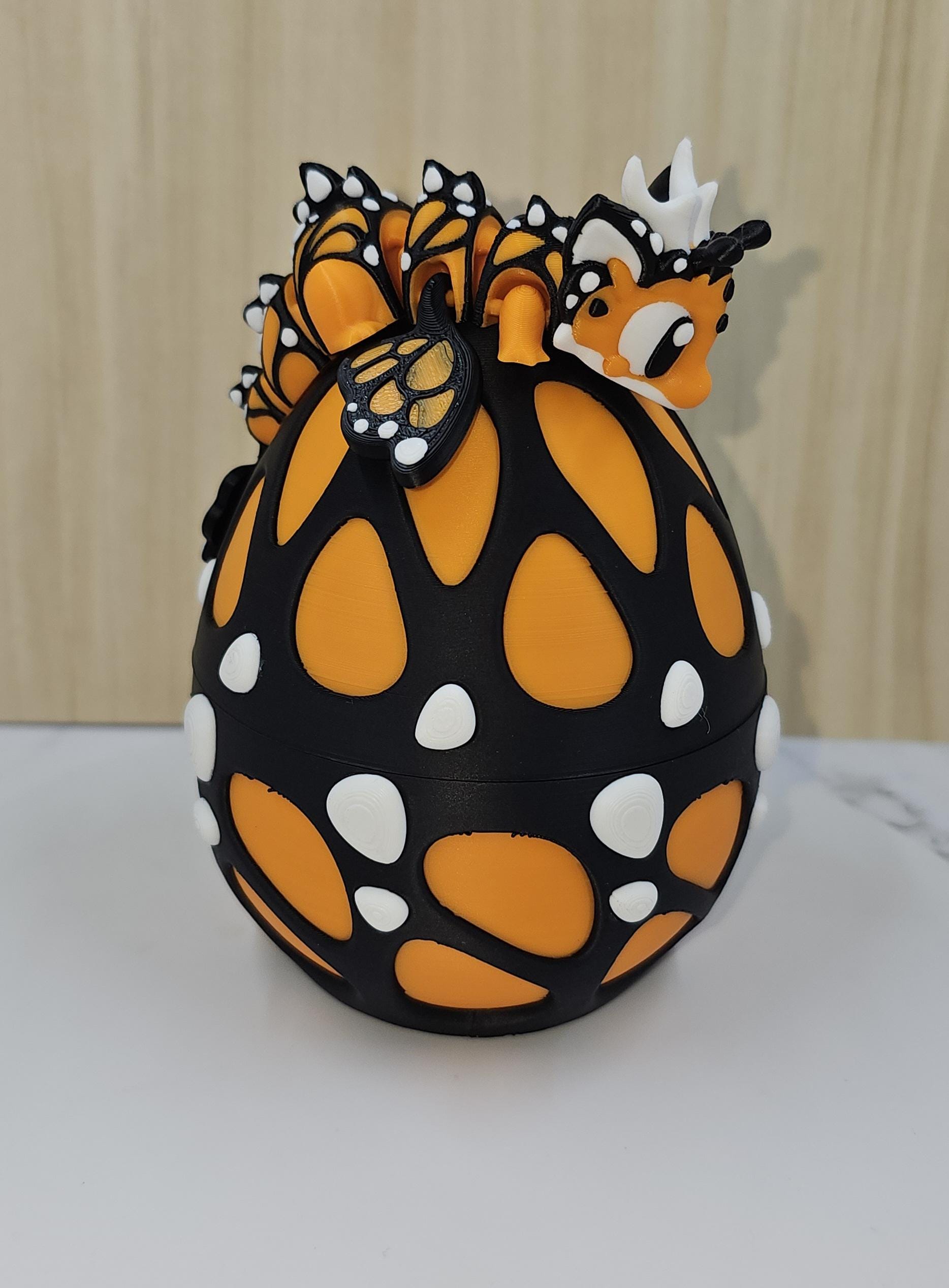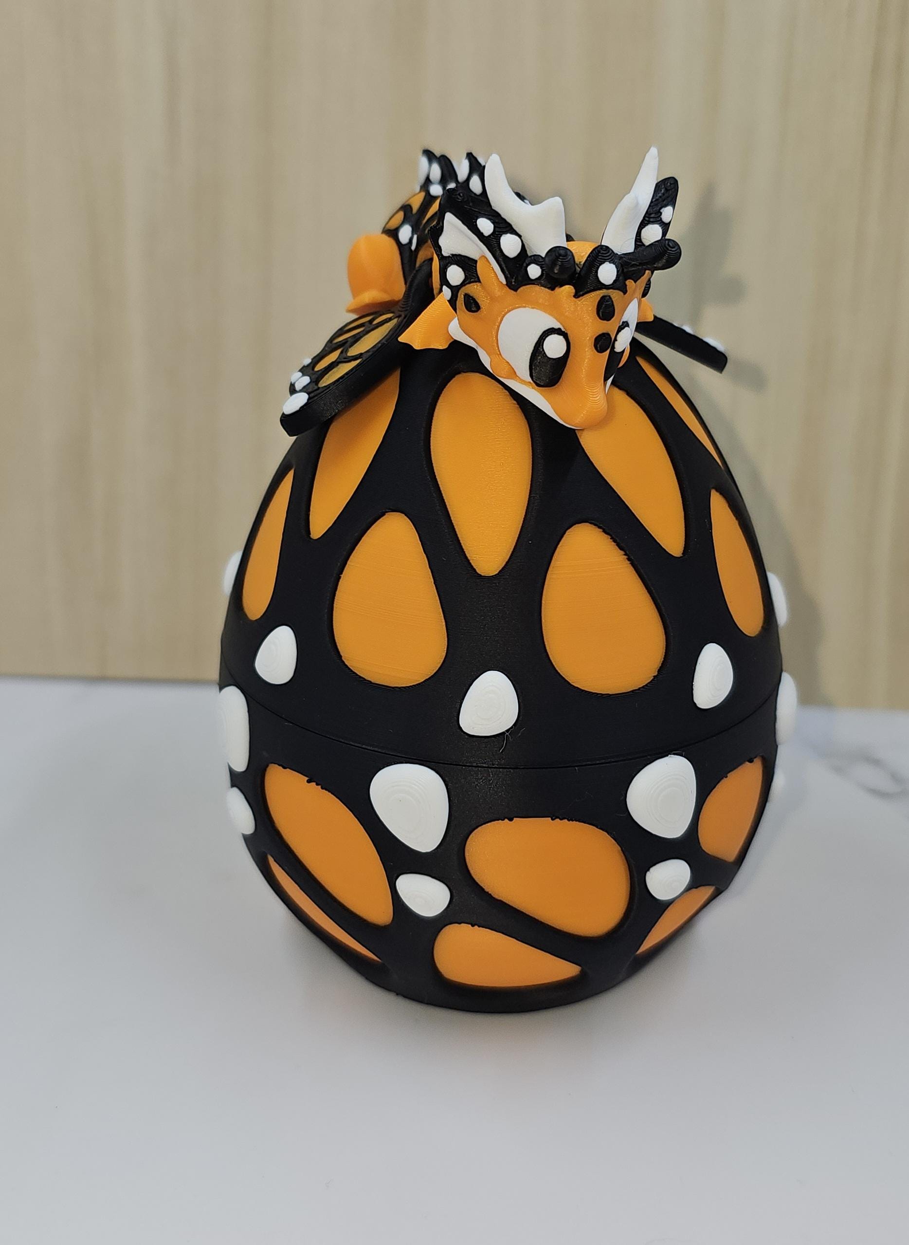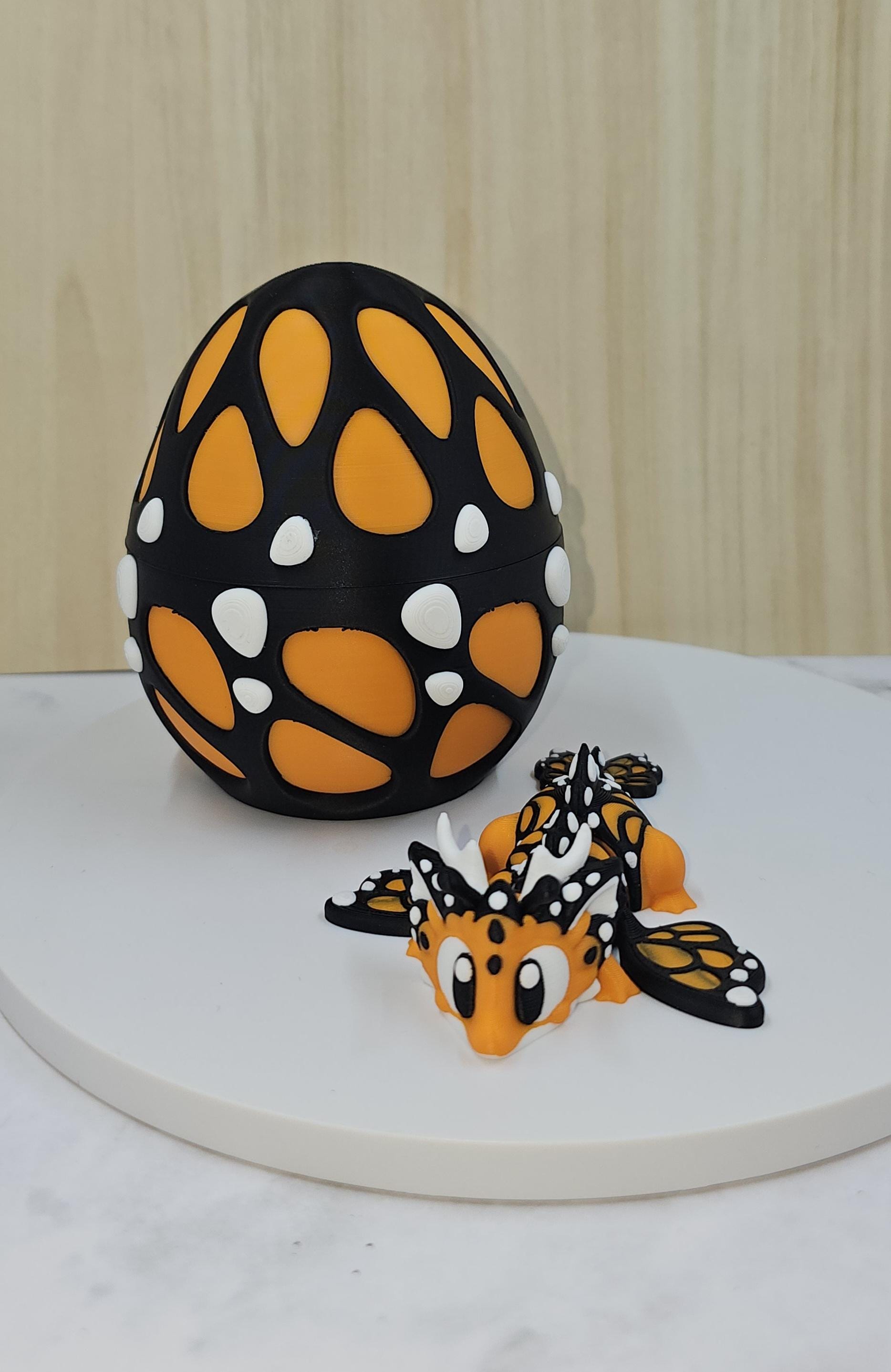 Inspired by delicate butterfly patterns and bold contrasting colours, this adorable mini dragon features wing-like details and a playful design that pairs beautifully with its matching butterfly-style egg. The egg is designed to hold and display the dragon when not in use, creating a complete fantasy display.