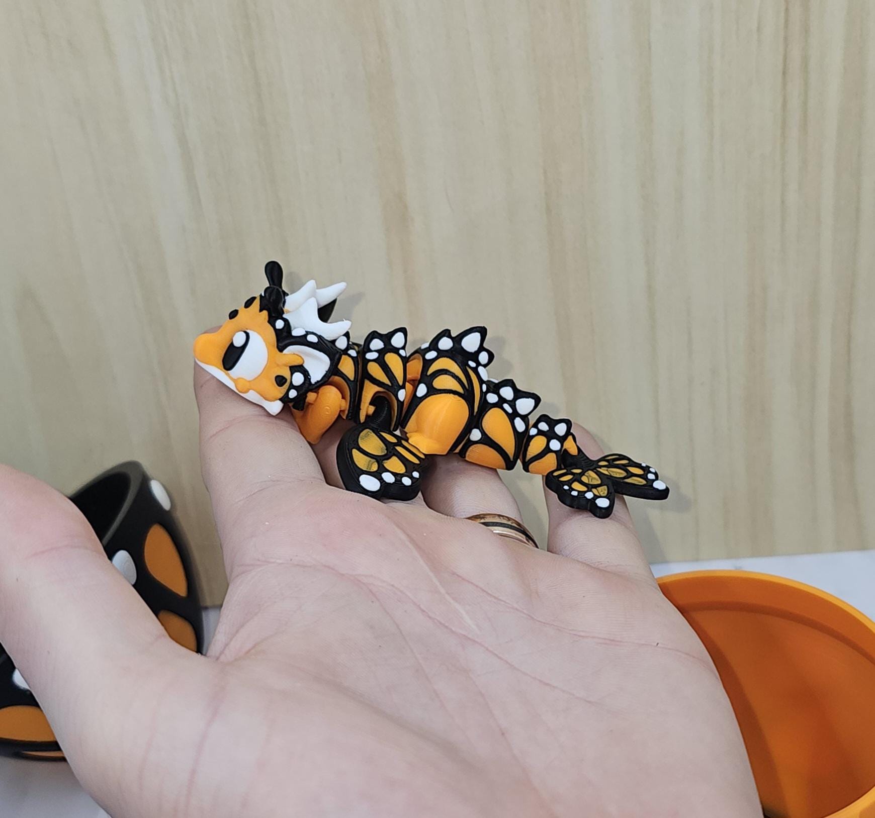 Height: 10.3 cm Butterfly-inspired patterned shell Designed to hold and display the dragon