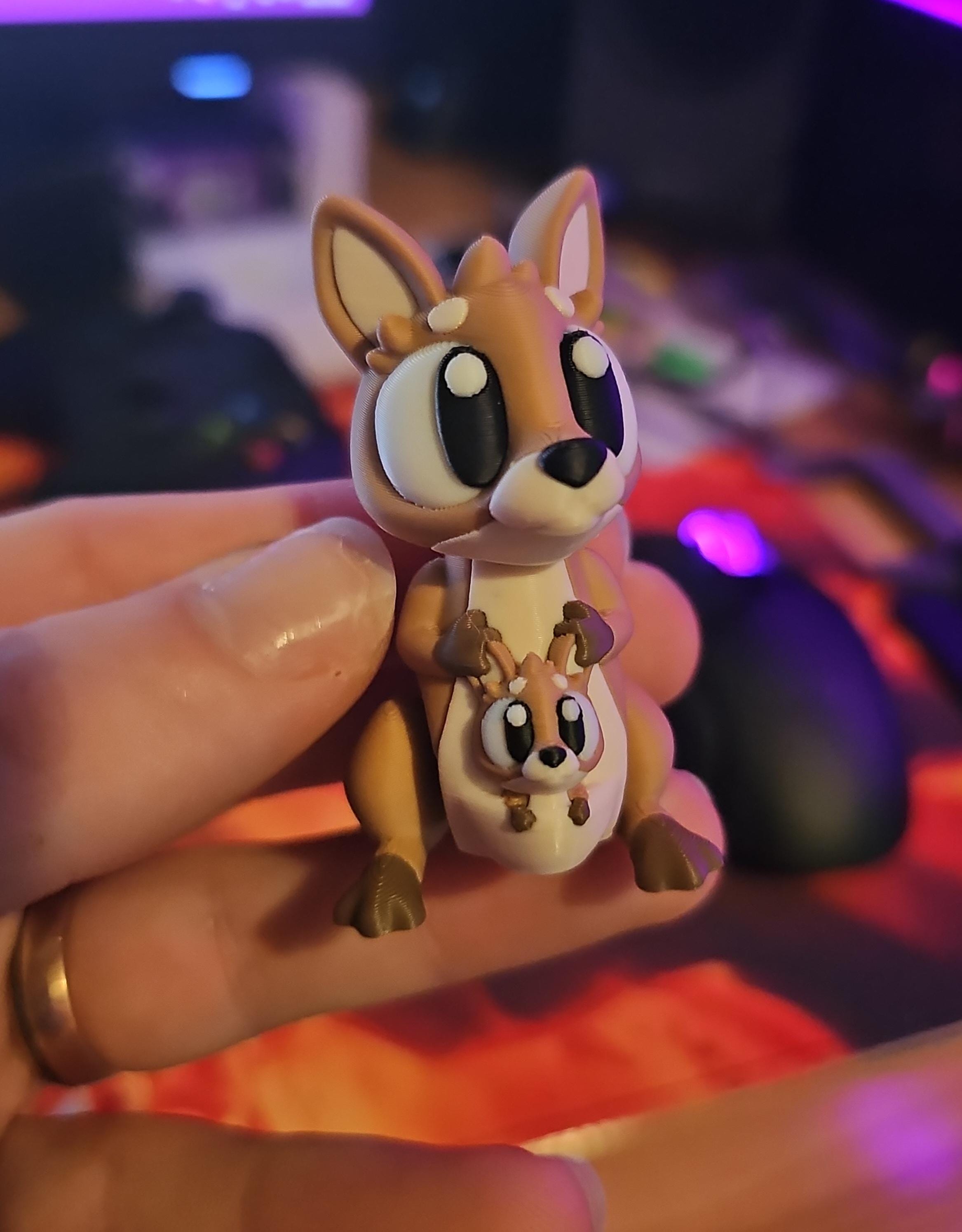 This miniature kangaroo is a licensed 3DGob design, 3D printed in high-quality PLA and carefully colour-matched for a clean, polished finish. Available with or without a joey, and as either a standard figurine or a keychain, so you can choose the version that suits you best.