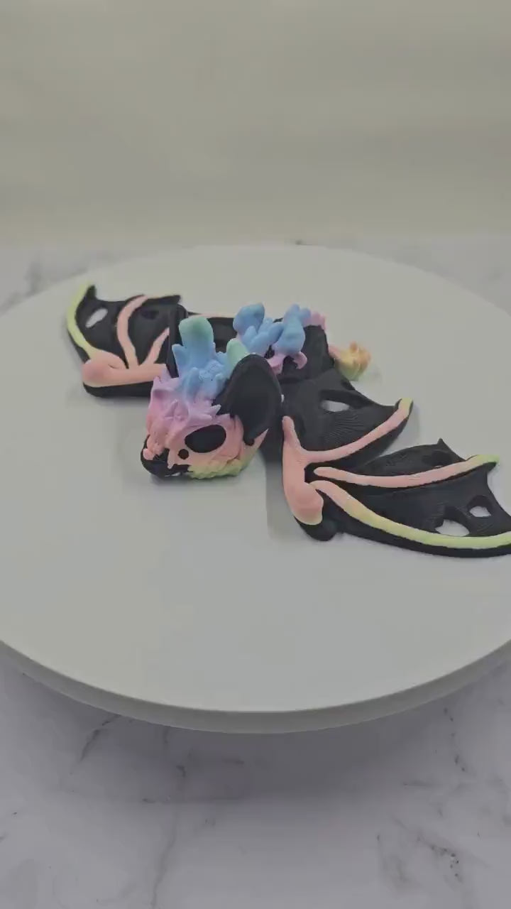 Designed by Cinderwing3D and printed with care, this flexi bat features full articulation and vivid color. Each one is unique due to the gradient filament!