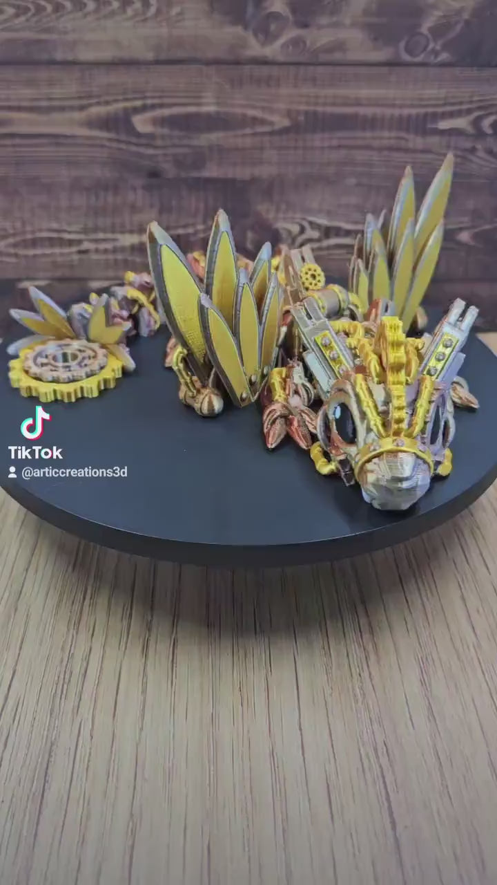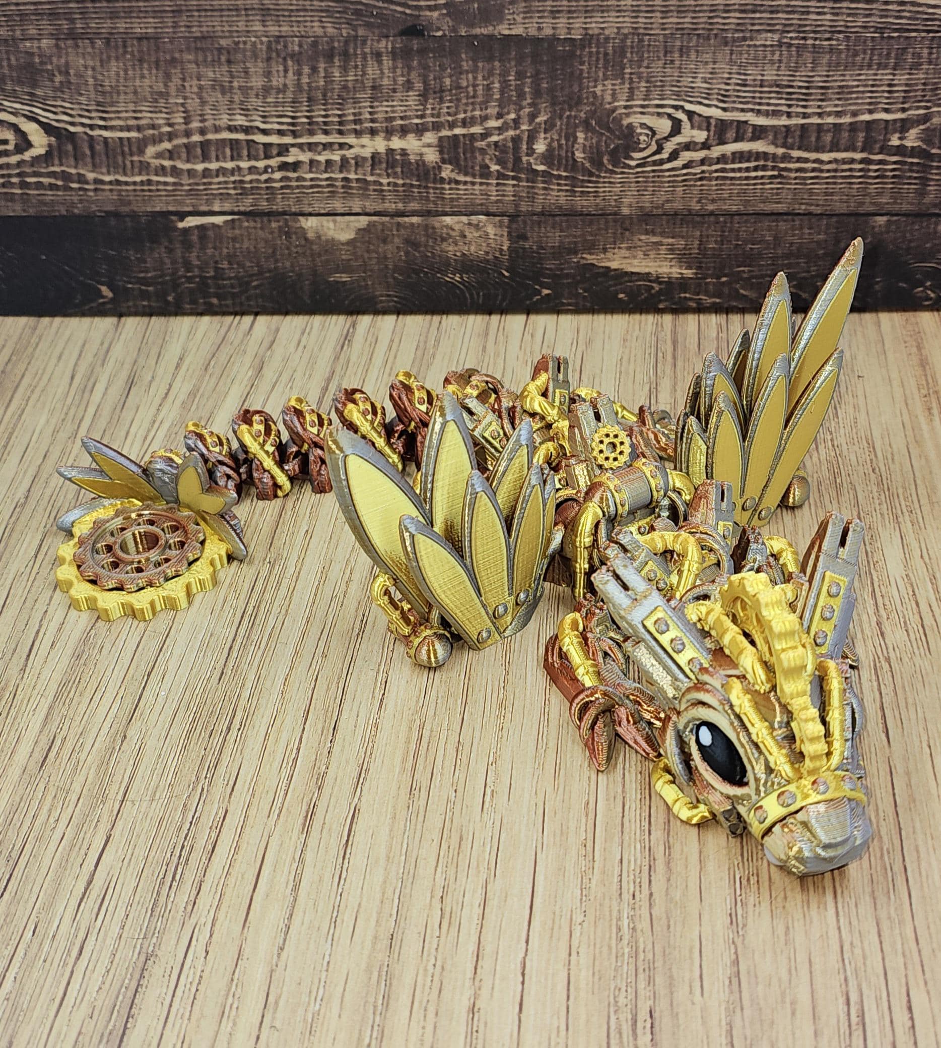 Baby Steampunk Dragon | Articulated 3D Printed Dragon with Spinning Cog on tail | Winged or Wingless | Cinderwing3D