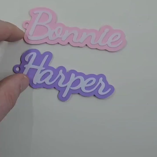 Stunning 3D printed name tag for a school bag completely customisable background colour and font style.